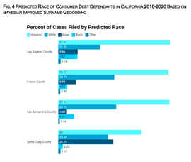 New findings from the Debt Collection Lab show that debt collection lawsuits are filed at higher rates against Black and Hispanic borrowers in California. Court data coupled with demographic predictions show disparities in engagement in the litigation process and more entries of judgment against non-white consumer defendants.